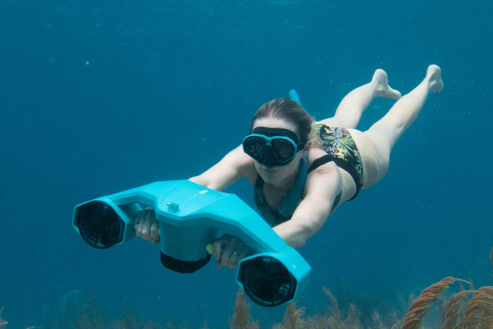 Deze Seascooter is een zelf drijvende, elektrische onderwater scooter die je dag op het water onvergetelijk maakt. Stel je voor: je springt in het water, pakt de scooter, en cruist door de zee. Met de meegeleverde snorkelset kun je vissen spotten tot wel 30 meter diep. De batterij gaat 40 minuten mee, dus genoeg tijd om echt te genieten. Dit is niet alleen leuk voor kinderen, volwassenen vinden het net zo spannend. Het geeft je een compleet nieuw perspectief op het water.