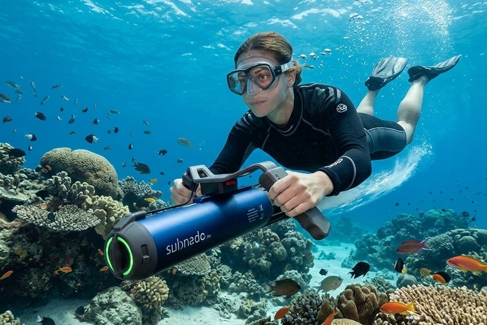 De Subnado onderwaterscooters zijn kleine maar krachtige apparaten dat zwemmers en duikers voortstuwt. In tegenstelling tot traditionele onderwaterscooters is Subnado licht en draagbaar, waardoor het eenvoudig mee te nemen is op reizen. Het compacte ontwerp maakt het ideaal voor zowel beginners als ervaren duikers die hun onderwaterervaring willen verbeteren zonder zware uitrusting mee te nemen.
